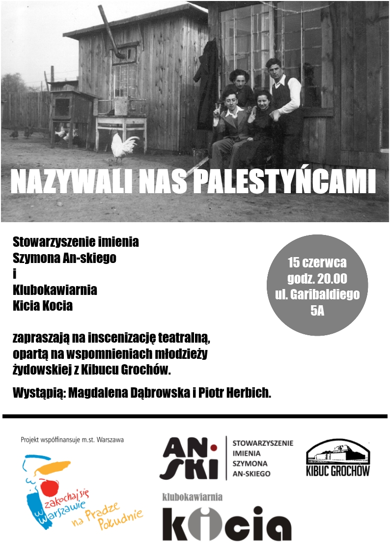 15 czerwca w Klubokawiarni Kicia Kocia odbyło się premierowe przedstawienie inscenizacji wspomnień kibucniczek i kibucników z Grochowa pod tytułem „Nazywali nas Palestyńcami”. Wspomnienia żydowskiej młodzieży z Kibucu Grochów przeczytali aktorzy Magdalena Dąbrowska i Piotr Herbich. Fragmentom wspomnień towarzyszyły wybrane utwory muzyki chalucowej, a jako scenografia - pokaz archiwalnych zdjęć z kibucu.